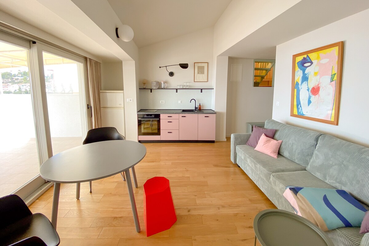 Penthouse Adriatic Blue is a 75 m2 big brand new luxury apartment with a stylish touch and plenty of sunlight. Apartment is located in Tučepi, just 5 meters from the beach and crystal clear Adriatic Sea. Tučepi is a small tourist town, famous for the longest pebble beach (4km), along which a beautiful promenade is situated, in the shade of the pine trees.