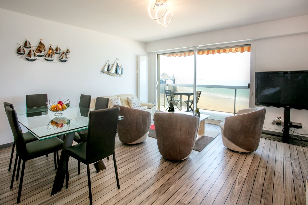 L'appartement est calme et lumineux, il est situé dans un cadre idyllique proche des commerces. Le logement est situé en front de mer avec un accès direct à la plage du Minihic, l’une des plus belles plages de Saint-Malo. Avec une vue à 180° sur la mer, les plages et la pointe de la Varde, vous serez aux premières loges pour admirer le coucher de soleil derrière l'île de Cézembre. L'appartement peut accueillir de 2 à 4 personnes (T2 - 57 m2).