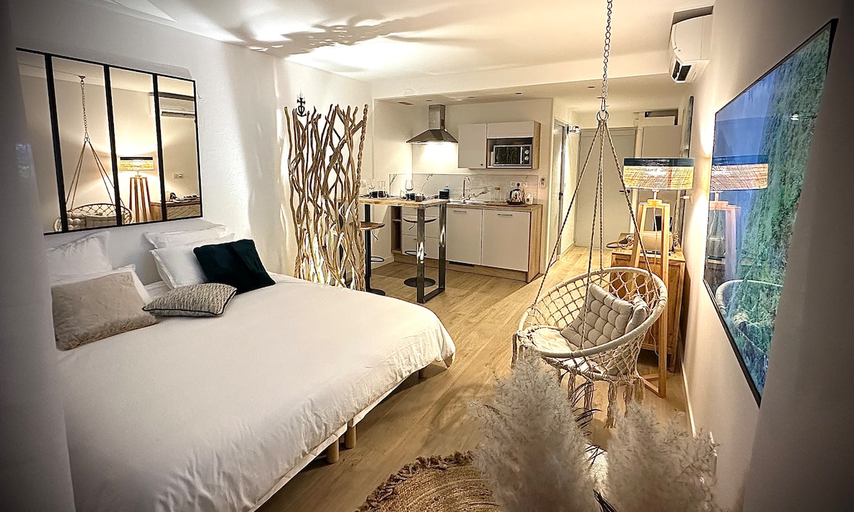 ☀️Détendez vous dans ce logement calme et élégant. ☀️Au cœur des marinas, joli studio 20m2 et terrasse très belle vue port, 3ème étage (sans ascenseur). Pour 2 adultes ou 1 adulte et 1 enfant ☀️Il se compose d’une pièce de vie ouverte sur une belle terrasse, climatisation, d’une cuisine entièrement équipée, Nespresso, frigo, lave vaisselle, lave linge, four électrique, micro ondes… ☀️A 8mn à pied de la plage et des commerces ☀️Parking privé et WIFI gratuit 🏊♂️PISCINE OUVERTE DU 15 mai au 30 sept