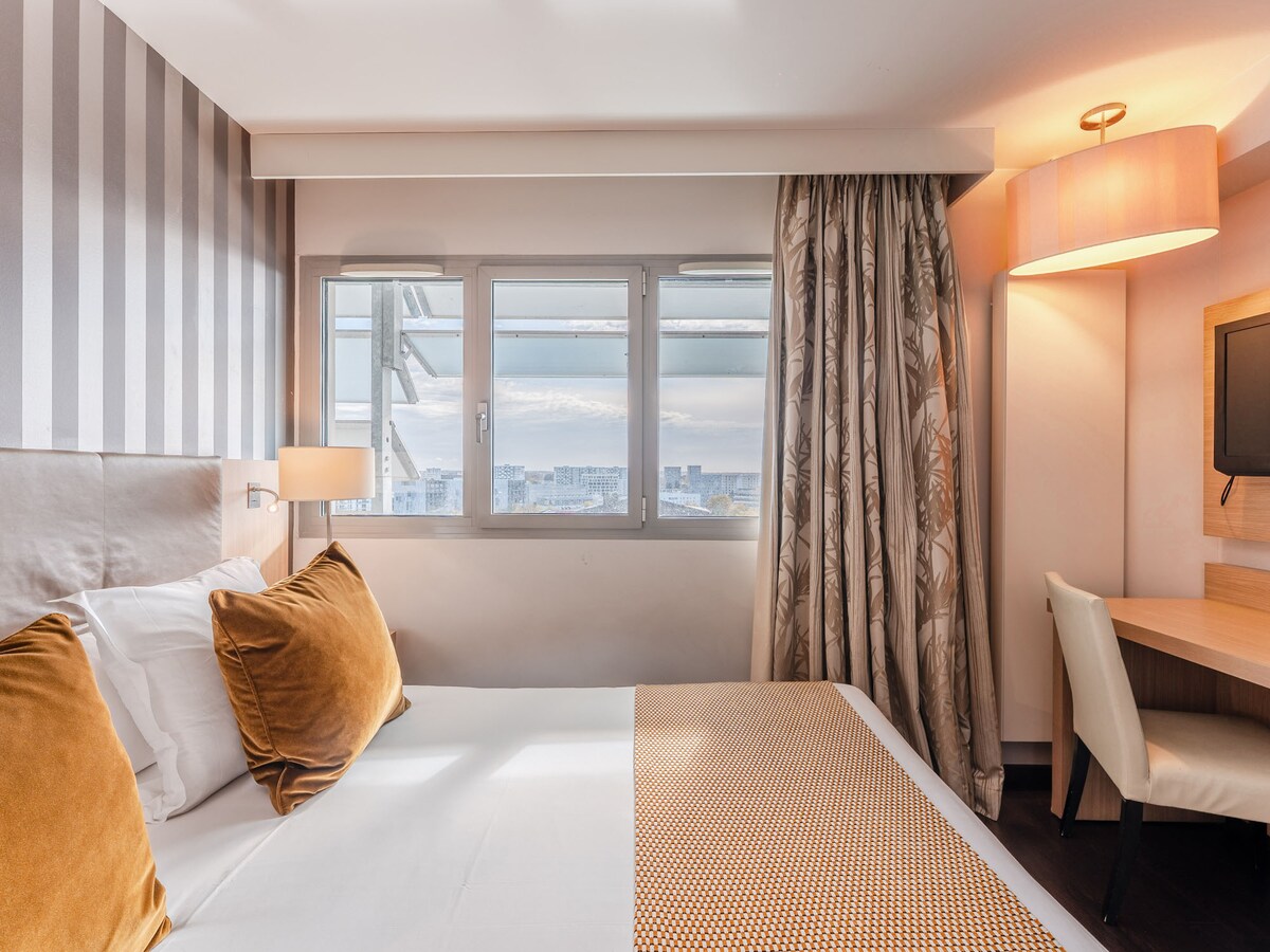 Situé proche de la cité du vin, en bord de Garonne, le Residhome Bordeaux vous propose des appartements prêts à vivre et une large gamme de services. Pouvant accueillir jusqu'à 4 personnes, l'appartement dispose d'une chambre, d'une cuisine équipée, d'un salon avec sofa-lit, d'une salle de douche, d'un téléviseur. Non inclus dans le tarif Airbnb : • Parking privé payant : 15€/jour/véhicule. • Supplément animaux : 9€/animal/jour. • Petit-déjeuner buffet 100% bio : 16€/personne/jour.
