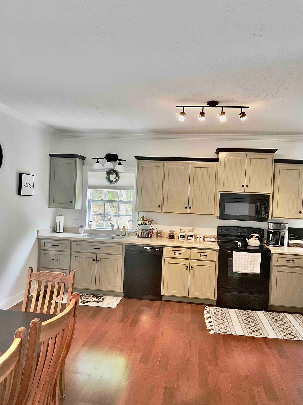 En entrant dans ce rancher entièrement rénové, vous serez frappé par la cuisine ouverte et l'espace de vie qui vous invite à vous blottir dans les meubles confortables devant la télévision grand écran. La cuisine est fraîche, moderne et entièrement équipée avec une grande table adaptée pour un dîner en famille ou un café et une conversation. Il y a trois chambres bien aménagées et un bureau avec canapé-lit. Trois salles de bains signifient pas d'attente. La grande cour arrière clôturée protège vos compagnons à 4 pattes.