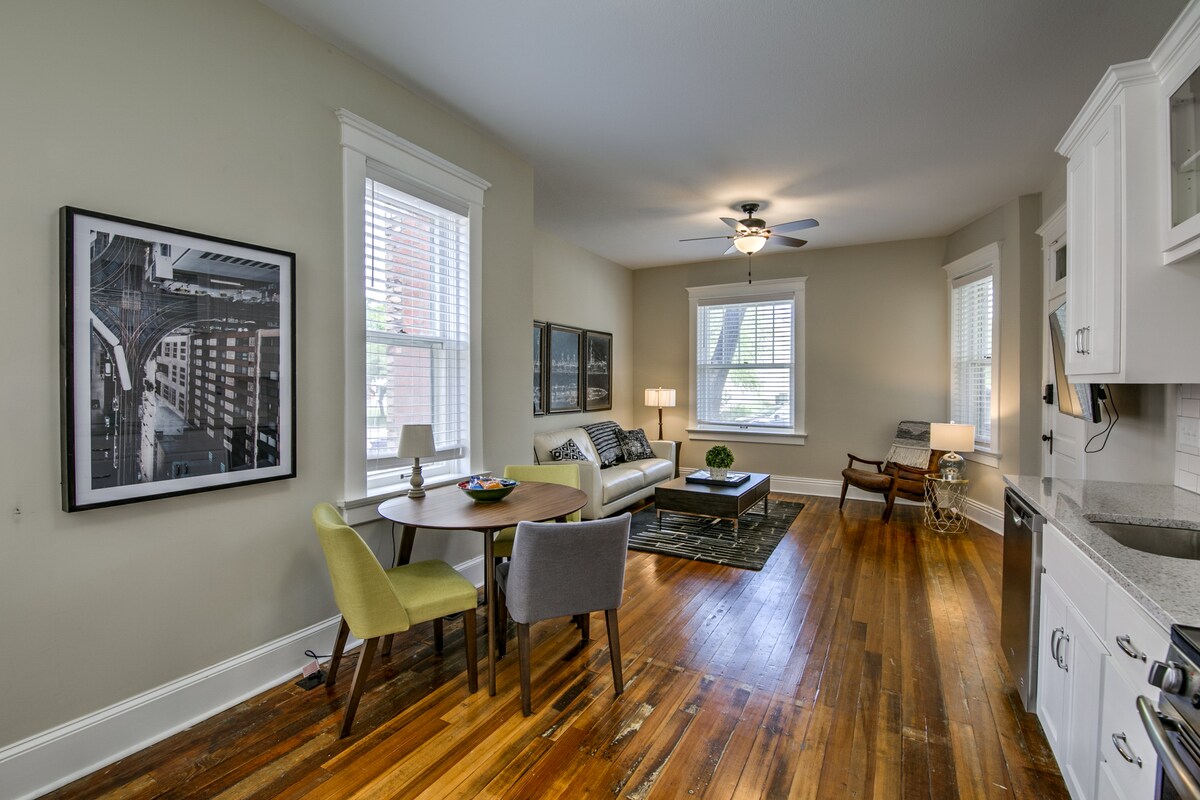 Profitez de ce bel appartement au deuxième étage au cœur de l'historique Excelsior Springs, à quelques minutes à pied d'excellents restaurants, brasseries et magasins. Prenez le tramway pour une visite des vignobles, visitez le Hall of Waters historique ou profitez de l'un des nombreux événements amusants du centre-ville. À seulement 30 minutes du centre-ville de Kansas City. C'est une excellente option pour les couples, les aventuriers en solo ou les voyageurs d'affaires.