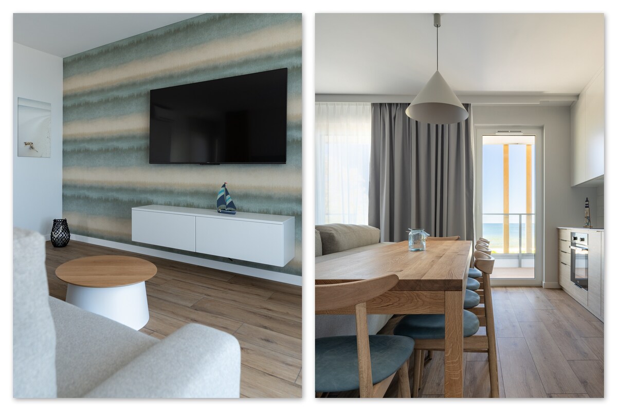 L'appartement Baltic Wave 5 est un choix parfait pour 2 couples ou familles avec enfants. L'appartement enchante avec son bel intérieur et sa finition de haute qualité dès le début. L'appartement est situé en plein centre de Sopot et offre deux chambres avec lits doubles et deux salles de bain. Dans une chambre, il y a un canapé-lit confortable supplémentaire pour 2 autres personnes. Une cuisine entièrement équipée avec une grande table à manger et un balcon ensoleillé vous invite à un repas avec vin.
