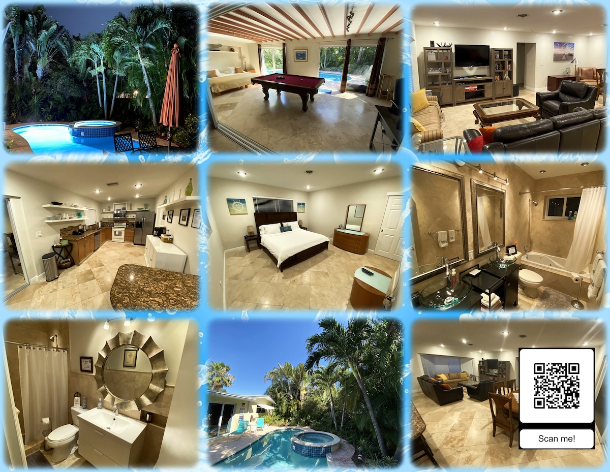 Relaxing, peaceful water front property. Perfect for couples retreat, friends get away and families. Enjoy an afternoon in the jacuzzi while admiring a beautiful sunset. Relax in a warm pool after a day at the beach. In the heart of Pompano beach , 5 min from one of the most beautiful beaches in Florida. 5 start restaurants within minutes and family friendly activities. Managed by owners. Managed by owners Clean and treated pool & Jacuzzi every turn-over complementary.
