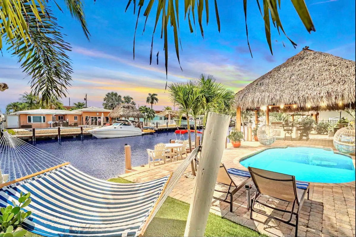 Experience complete relaxation at our island style home. Centrally located in Pompano Beach next to Ft Lauderdale, 2 miles from the beach. Fall in love with sitting on the dock while boats pass by, swinging on the hammock, watching the game outside while grilling, hanging out in egg chairs over the pool or feeling weightless in the hot tub. Kayaks free for your use, house is STOCKED with supplies, hi-speed internet, 50” Roku TV in all bedrooms. Get the BEST Florida experience right here!!