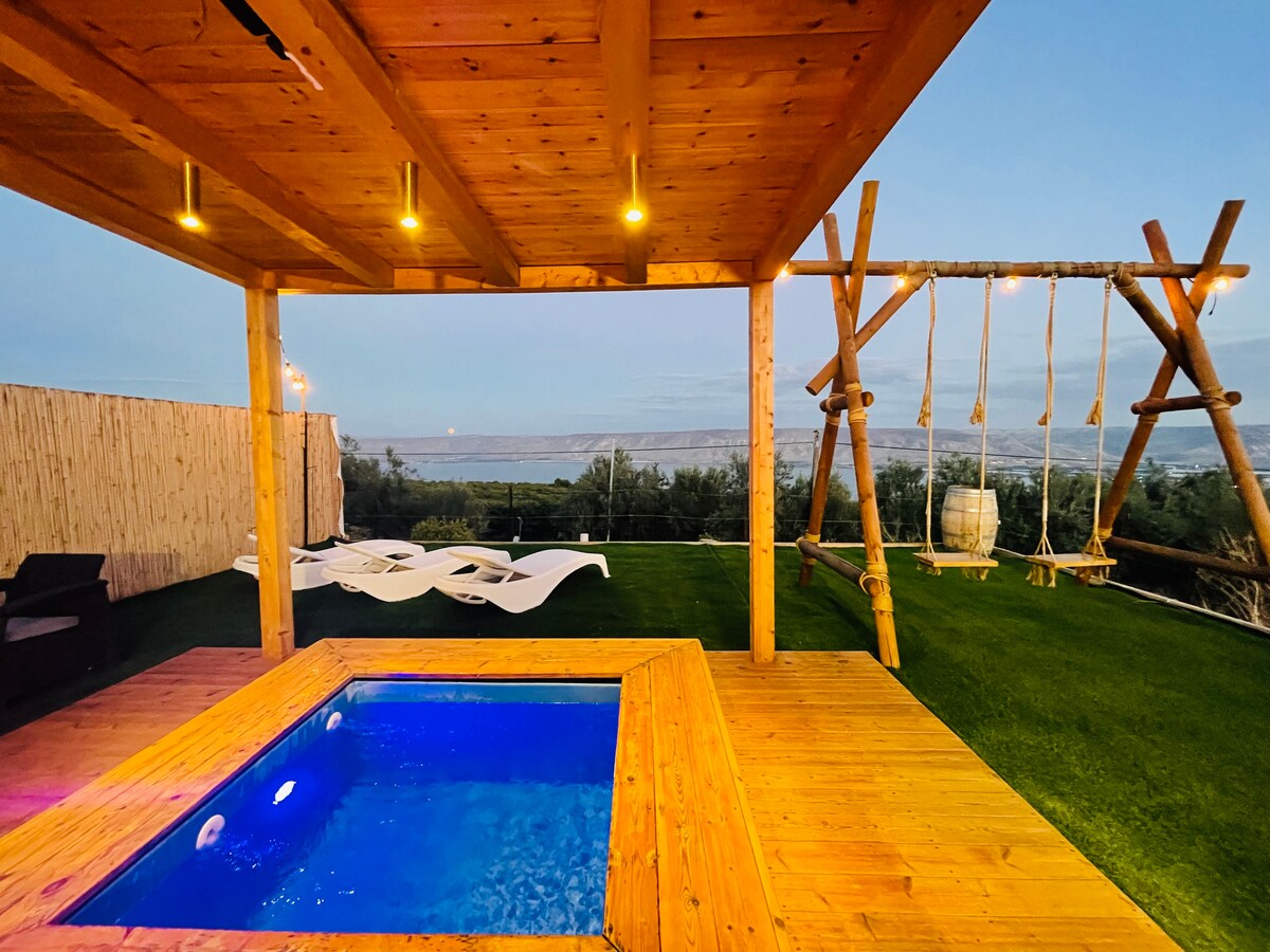 Un dôme géodésique situé dans une oliveraie au pied de la montagne dans un quartier privé et calme. La maison est large, spacieuse, moderne et spéciale. Il y a de puissants climatiseurs, une cuisine entièrement équipée, une machine à expresso, un four à micro-ondes, un lave-linge, un coin salon extérieur avec un barbecue et une piscine. Les environs sont magnifiques avec des sources naturelles et des sentiers de randonnée. La mer de Galilée est à seulement 10 minutes en voiture. Cette maison a été construite à la main par nous avec amour et soin. Nous nous ferons un plaisir de la partager avec vous !