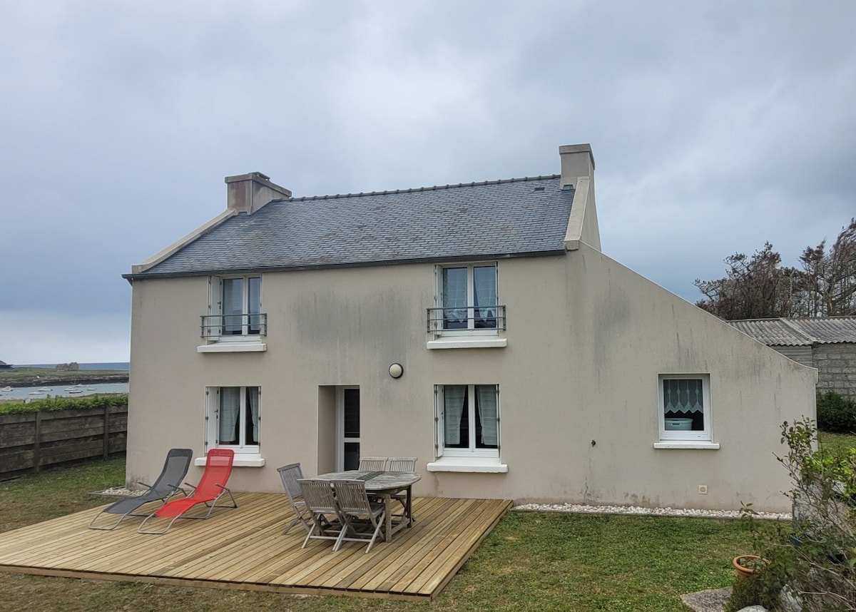 Maison en bord de mer, à 50 m du GR34, située près des plages du pays d'Iroise, du port marin et face aux iles du Ponant. Commerces, bars et restaurants à proximité. La maison est composée d'une cuisine équipée, d' une pièce de vie, de deux chambres, d'une salle d'eau et de wc séparés. Jardin et terrasses avec salons de jardin, barbecue. Les lits sont faits à votre arrivée, les serviettes de toilette fournies.