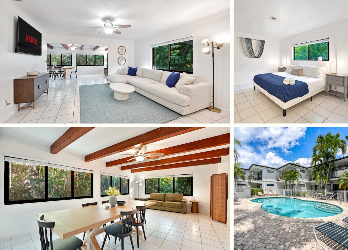 Bienvenue dans votre oasis éclectique du sud de la Floride. C'est un mélange unique de charme rétro et de confort moderne, parfait pour 4 personnes maximum. À quelques minutes des plages et des divertissements, c'est une base idéale pour les familles et les voyageurs d'affaires à la recherche d'une escapade mémorable. Profitez de notre piscine accueillante, de notre décor éclectique et de nos patios sereins, promettant un séjour plein de caractère et de commodité. Nous nous distinguons par notre hospitalité chaleureuse et notre touche personnelle.