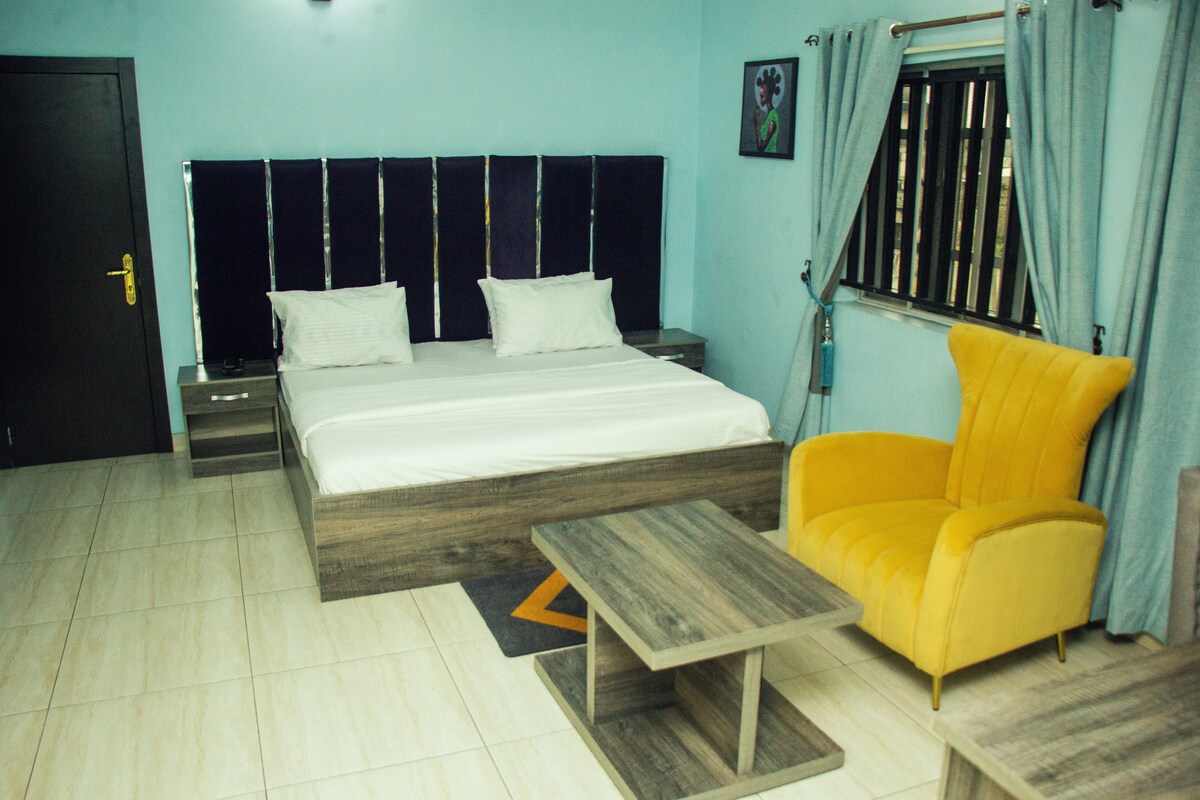 Un charmant boutique-hôtel de luxe de 8 chambres avec des installations et un service modernes de premier ordre pour vous assurer de ne jamais manquer votre maison. L'hôtel est situé dans un quartier très sécurisé, il est très confortable avec une belle ambiance, un quartier magnifique et paisible à Portribunalourt, à proximité du domaine de golf. Nos chambres se composent d'un matelas semi orthopédique 6*6, entièrement meublées et équipées d'une télévision à écran plat 43"et d'une climatisation Notre cuisine est fonctionnelle avec un très bon chef pour donner les meilleurs plats