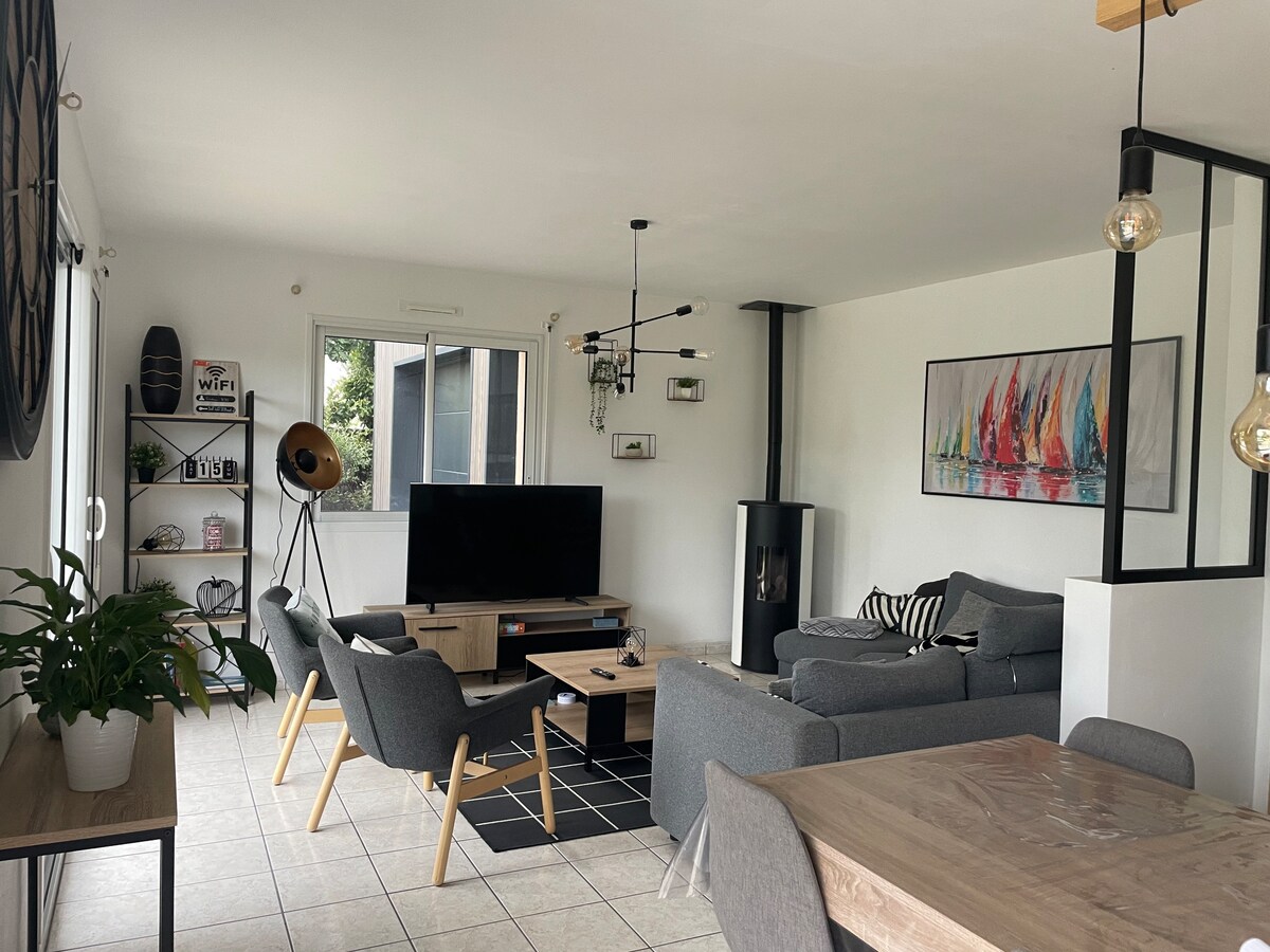 Maison familiale 190m2 - 8 personnes (2 familles) classée 4* tourisme 🍀Réduction à la semaine ‼️Vidéo 🎬 et photos sur 👉INSTA + LeBonCoin👈. @la. villa. de. kerleven CONTACT : la.villa .de.kerleven @ 🟠 . fr 🍀Réduction à la semaine entre : septembre et avril ( sera appliquée sur demande) NOUVEAUTÉ été 2024✨ Espace Bien-être 🌺 (Piscine balnéo chauffée intérieure - sauna ) ‼️Possibilité de louer sans l’espace bien être, voir 2de annonce… Environ 45e/nuit/pers