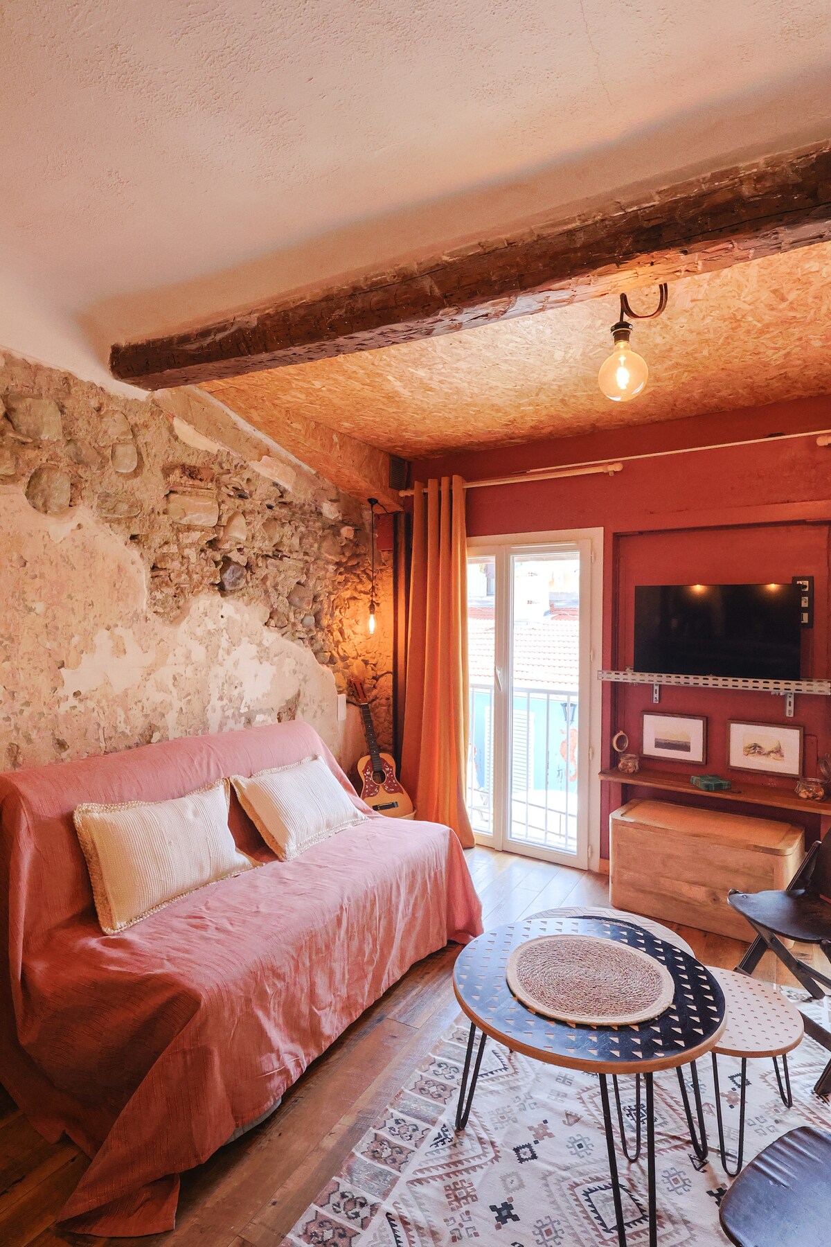 Joli loft à la décoration raffinée sur mesure, vous pourrez y séjourner en couple avec ou sans enfants, entre amis ou encore pour vos voyages d'affaires ! tout équipé, wifi climatisation, situé sur la place Nationale au coeur de la vieille ville et au calme ! Chambre avec lit double, penderie, espace douche et salle de bain à l'étage, vue mer fort carré et montagne. Salon avec cheminée décorative, canapé lit, cuisine toute équipée -Non accessible à personne à mobilité réduite