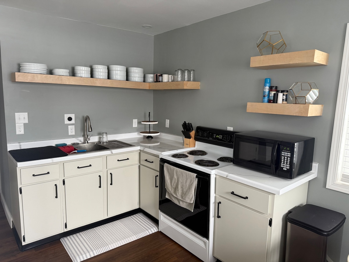 Bel appartement propre à seulement 5 minutes du Michigan Tech et une vue sur le lac Portage (accès au lac aussi !). Un stand de parking de garage disponible pour que vous puissiez aller directement de la voiture à l'appartement sans faire face à la neige. L'allée est déneigée. Wifi, chauffage, sélection de café Keurig inclus. Le lave-linge et le sèche-linge sont dans la salle de bain spacieuse avec douche. Cuisine complète et cheminée électrique. Monte-escalier depuis le garage. Lit Queen Size avec canapé-lit supplémentaire (environ taille normale) et lit pour tout-petit.