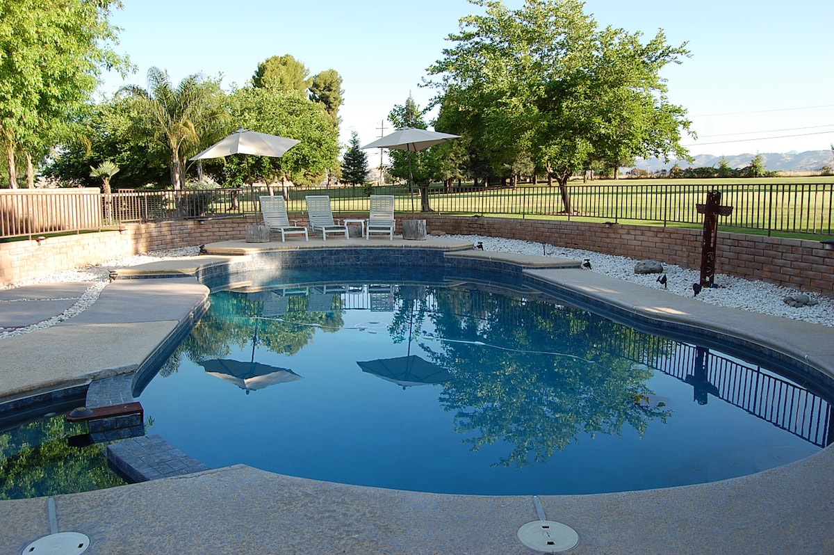 Cette maison construite en 1909 a beaucoup de caractère. Beaucoup d'espace pour toute la famille et les chiens aussi. Vous pourrez profiter du porche enveloppant, d'un plongeon dans la piscine, d'une immense cour pour les chiens et les enfants. Nous sommes à distance de marche du centre-ville d'Exeter et des épiceries locales. Nous sommes également à côté du terrain de golf. Nous sommes à 45 min de la porte des Sequoias. Profitez des nombreux endroits autour de la maison pour vous asseoir et profiter de la vue sur les montagnes.