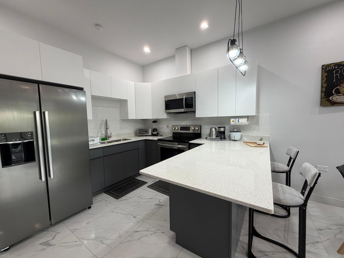 W22 Urban Retreat offre un séjour moderne et confortable au cœur de Kingston 6, parfait pour les affaires, les loisirs et les longs séjours. Cet appartement à aire ouverte d'une chambre est conçu pour le confort et la commodité. Profitez de l'espace de vie lumineux et aéré, du coin repas dédié et de la salle d'eau. La cuisine entièrement équipée permet de préparer facilement les repas, la buanderie dans l'appartement offre tout le confort d'un chez-soi. Sortez sur le balcon pour savourer la vue ou détendez-vous dans un lit queen-size confortable avec un spacieux dressing.