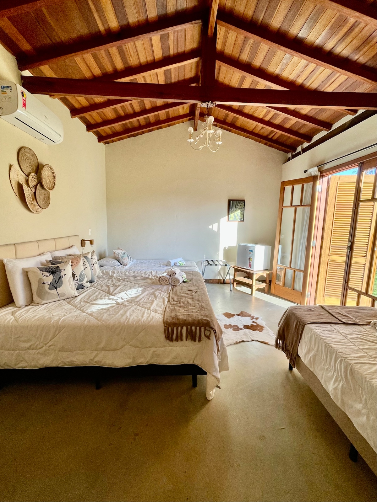 Bienvenue au Rancho D'Sol, je m'appelle Marinho et je serai votre hôte. Notre propriété est « accueillante » et chaque nouveau client fait partie de la famille. Nous avons une politique d'hébergement où vous pouvez accueillir jusqu'à 20 personnes tous les jours de la semaine, minimum de 2 personnes du lundi au jeudi et minimum de 6 personnes du vendredi au dimanche, dans la maison, nous avons 4 suites, salle de télévision, espace de jeux avec billard et une belle table pour 12 personnes, notre cuisine est complète et très organisée