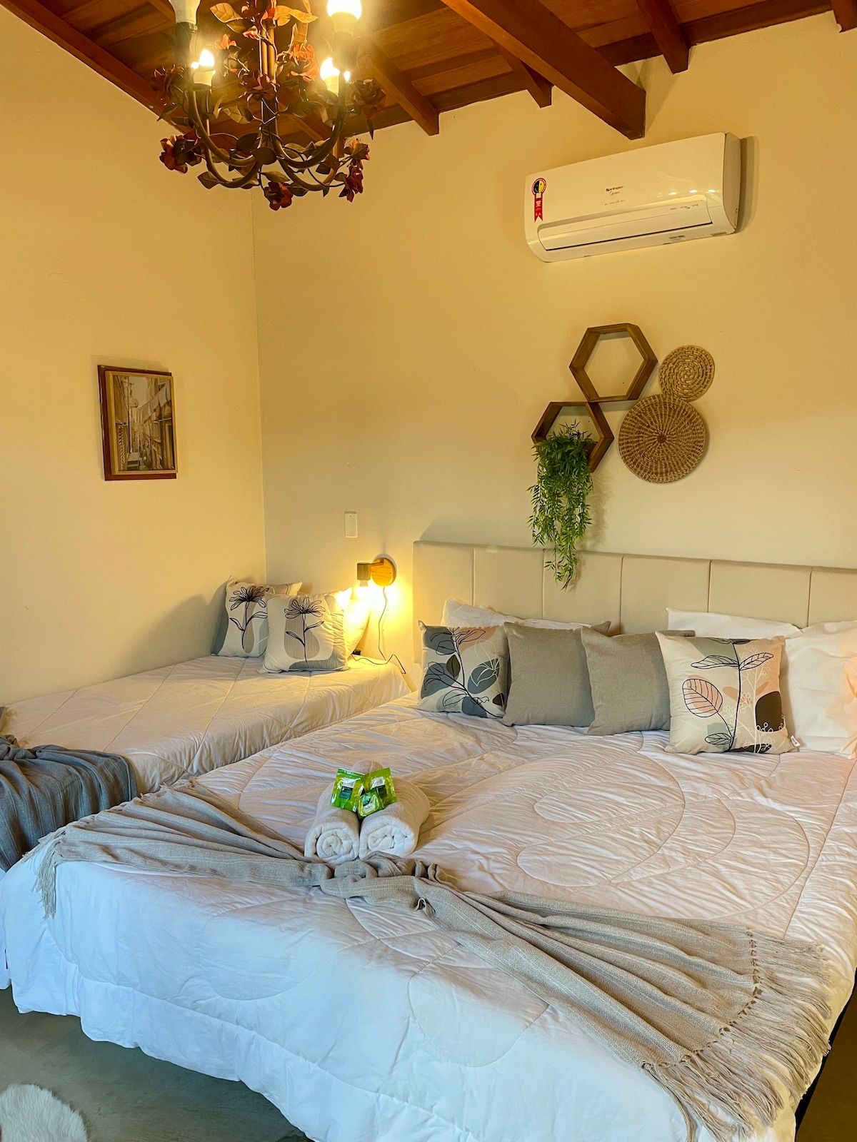 Lieu confortable de 1 boisseau, avec wifi, où vous vivez avec la nature, les fleurs et les oiseaux. Parfait pour que les familles puissent profiter et se détendre, il est situé en direction d'Itu/Porto Feliz (à 2 km de Porto Feliz), accès facile aux marchés, aux boulangeries, aux bars, aux restaurants, aux pharmacies et à l'hôpital. Les femmes de ménage sont aptes à résoudre des problèmes ponctuels. Remarque 1 : Pour votre meilleur confort, veuillez apporter la literie, les couvertures et les serviettes de bain. Note 2 : Prises de 220 volts