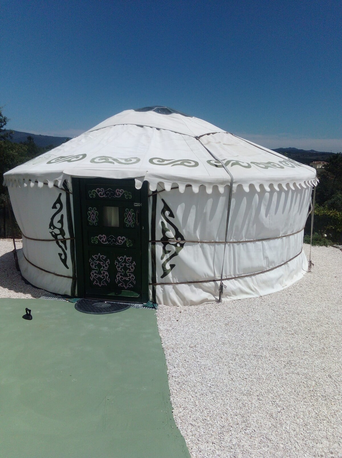 Notre yourte est située en pleine nature, sur un verger d'orangers et est décorée avec goût. La yourte est spacieuse (environ 28 m ²) et confortable. Il y a deux lits de luxe, un canapé fin, une table de salle à manger et de travail et un siège et il y a une connexion Internet par fibre optique rapide. La yourte est pour deux personnes et offre beaucoup d'intimité. À côté de la yourte se trouve un logement en bois avec cuisine et salle de bain complètes. À l'extérieur se trouvent plusieurs sièges et chaises longues et une pergola en bambou avec une table de pique-nique.