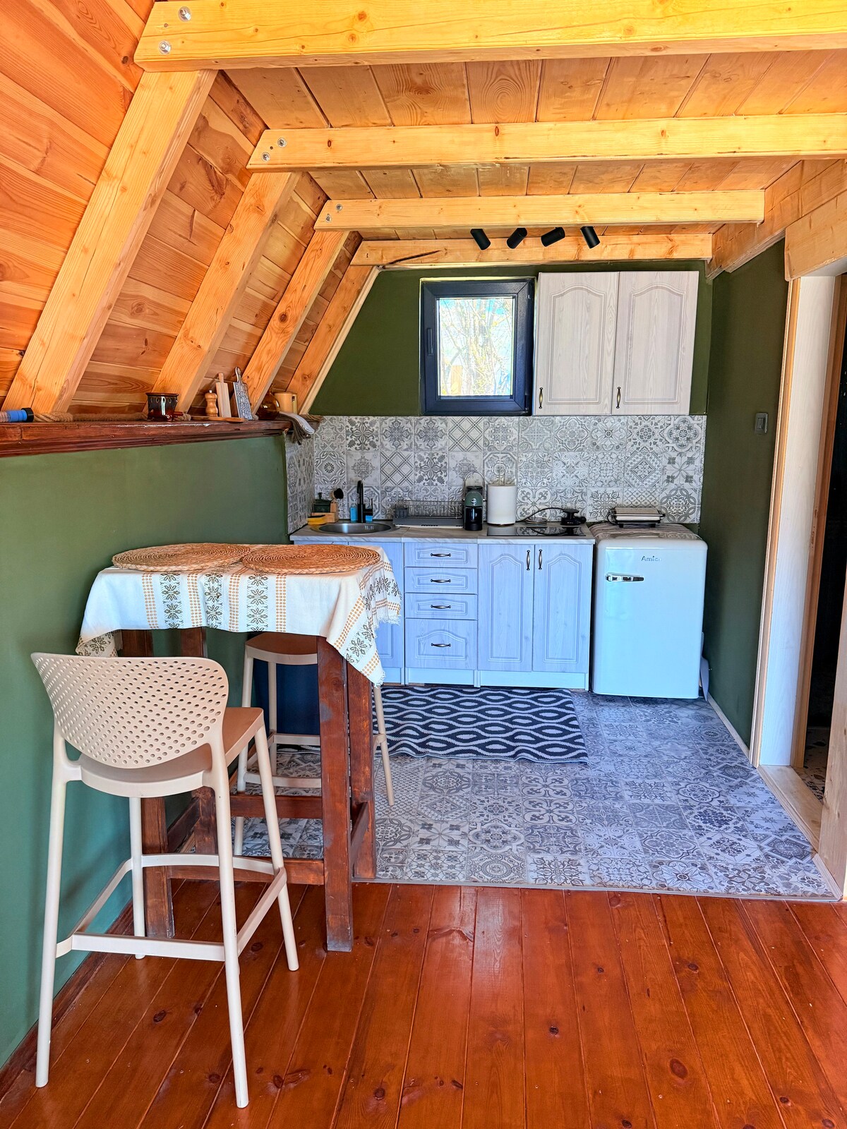 Découvrez l'escapade parfaite dans ma charmante cabane en bois située sur une colline, offrant une vue unique sur les paysages environnants. Nichée au milieu d'arbres luxuriants, la cabane offre un sentiment de paix et d'intimité. Profitez d'un intérieur moderne avec des éléments en bois qui créent une atmosphère chaleureuse. La terrasse spacieuse est l'endroit idéal pour siroter votre café du matin tout en admirant le lever du soleil ou se détendre avec un verre de vin au coucher du soleil.
