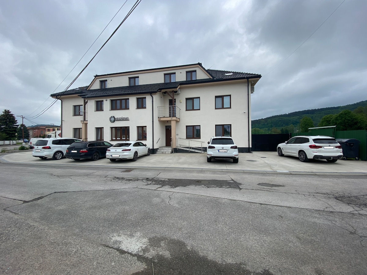 Détendez-vous, s'amuser et faire du sport. Profitez de moments agréables dans de nouveaux appartements modernes dans le village de Predmier, d'où tout est à deux pas - qu'il s'agisse d'activités sportives (été et hiver), de lieux touristiques et de bien-être. Joli restaurant familial/pizzeria/pub/café disponible sur place. Lieux de randonnée et d'escalade - Súщov 7,8 km, Manínska tiesňava 12,2 km, Makov-Javorníky 33,7 km, Považský hrad 9 km, Hričovský hrad 8,5 km. Mestá - Bytča (5 km), Považská Bystrica (12 km), Žilina (22)km.