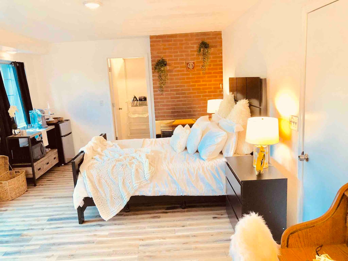 L'espace est un studio confortable et bien aménagé. C'est une ADU à l'arrière de la maison principale. Toutes les commodités que l'on peut souhaiter sont fournies (Wi-Fi, Internet, télévision par câble, lave-linge et sèche-linge, réfrigérateur, lave-vaisselle, cuisinière, micro-ondes, climatisation, ustensiles de cuisine, etc.). Il est également très moderne et propre, avec une entrée privée et une entrée sans clé. À proximité de nombreux restaurants, bars et cafés.