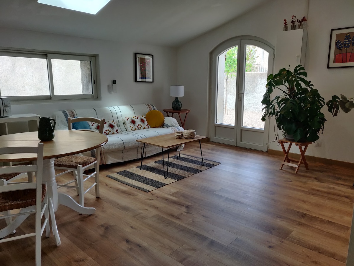 L'Annexe is a comfortable, cosy and romantic cottage situated on the edge of the scenic village of Mons, right on a walking trail that leads to the Gorges d'Héric or up the Caroux mountain. It's 10 minute walk down to heart of the village where there are several restaurants, a café, a grocery store, tourism office and a weekly market. From the Kitchen-living space you have direct access to the paved patio under the vines and kiwi tree. The shared, unheated pool is open from April till October.