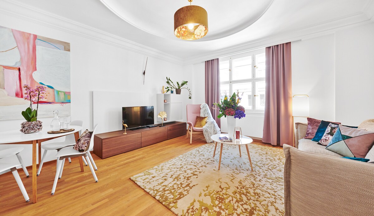 Bienvenue dans votre appartement entretenu par les Journées de Prague • Idéalement situé au cœur de la vieille ville de Prague, à côté de la synagogue espagnole et à 5 minutes de l'emblématique place de la vieille ville • Mobilier et décoration élégants • Se sent spacieux et équipé d'une connexion Wi-Fi haut débit (70 Mo), d'un bureau, d'une télévision avec Netflix et d'un petit balcon • L'appartement au design bien pensé peut accueillir confortablement quatre voyageurs dans une chambre et un grand canapé-lit.