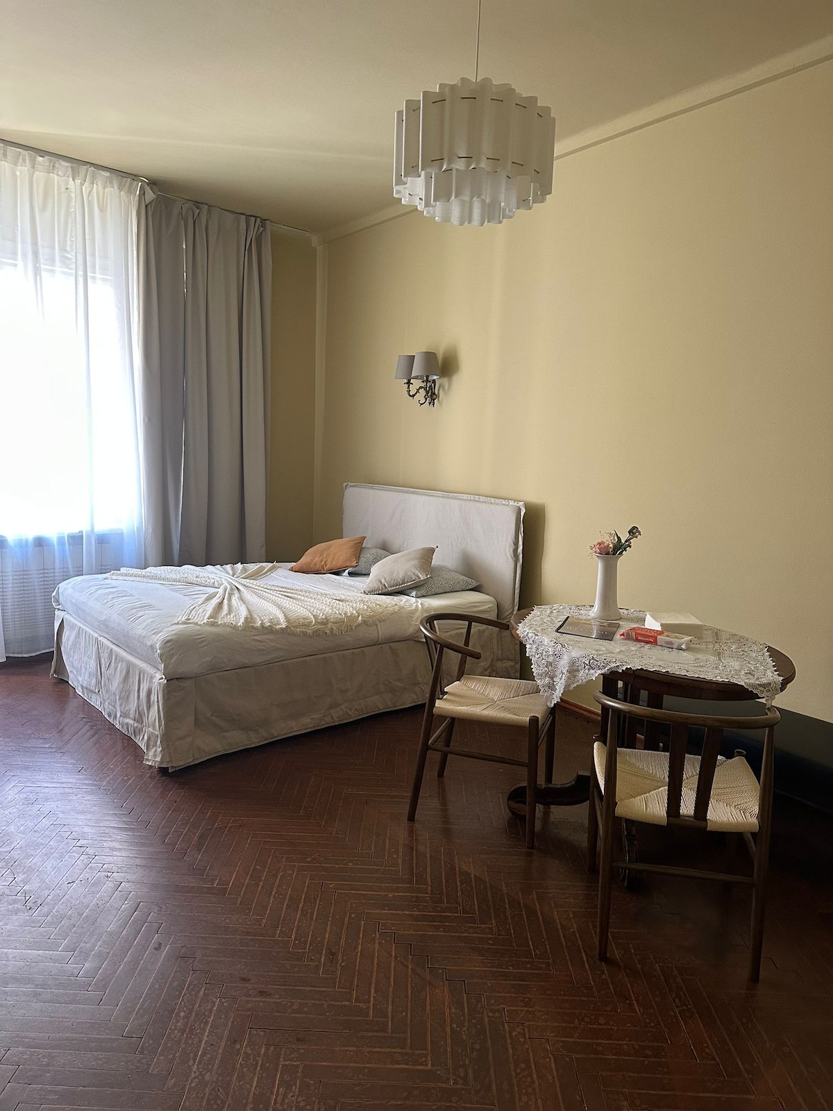 Bienvenue dans notre superbe appartement au cœur de Prague ! Notre maison spacieuse et lumineuse est logée dans un bâtiment historique avec des détails préservés, et dispose de 2 grandes chambres, d'un balcon, d'un salon avec une grande télévision et un canapé-lit, et d'un immense coin repas. Détendez-vous dans le grand jacuzzi de la salle de bain avec une télévision et profitez de notre connexion Wi-Fi ultra-rapide. Dînez dans l'un des restaurants exceptionnels du quartier et explorez les nombreuses attractions de la ville. Réservez dès maintenant pour un séjour inoubliable dans notre belle ville !