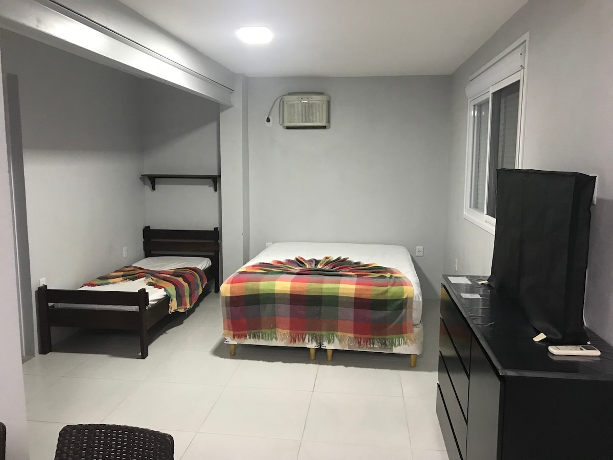 L'endroit idéal pour profiter en famille et/ou entre amis ! Grand appartement, situé au quatrième étage, peut accueillir 6 personnes, très bien situé, face à la mer, très bien exposé, à seulement 3 pâtés de maisons de la plage. Près des restaurants, glacier, pharmacie, marché et magasins ! 1,5 km du centre d'Arroio do Sal, ce qui vous laisse à proximité de l'agitation mais aussi dans le calme d'Areias Brancas pour vous reposer ! Nous apprécions la propreté, la sécurité et garantissons un excellent séjour dans notre espace !