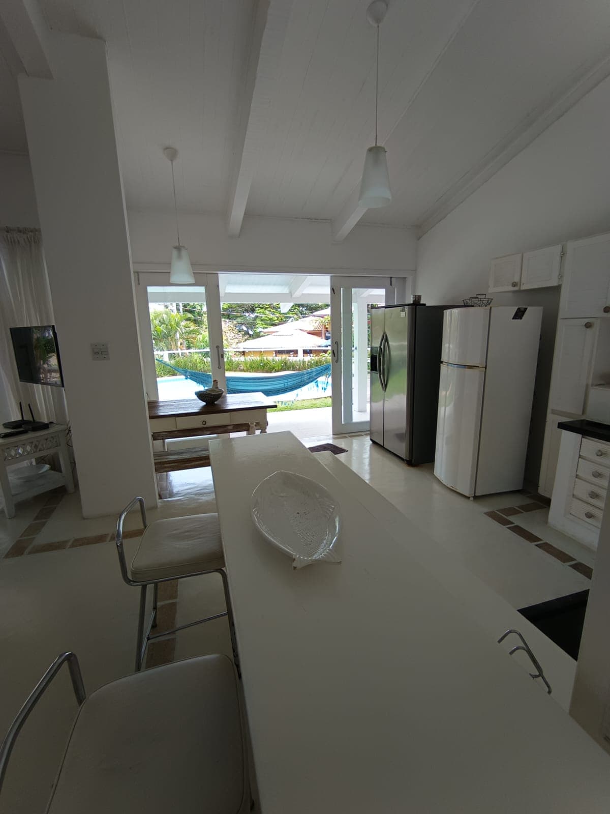 Belle maison à quelques mètres de la mer par une sortie exclusive et à 200 mètres de la plage de Julião, 3 chambres, dont une suite, toutes avec climatisation et ventilateur de plafond, grand salon avec double hauteur sous plafond, piscine, barbecue, garage pour 3 voitures, Wi-Fi. Rue sans issue avec portier de jour et portail électronique la nuit