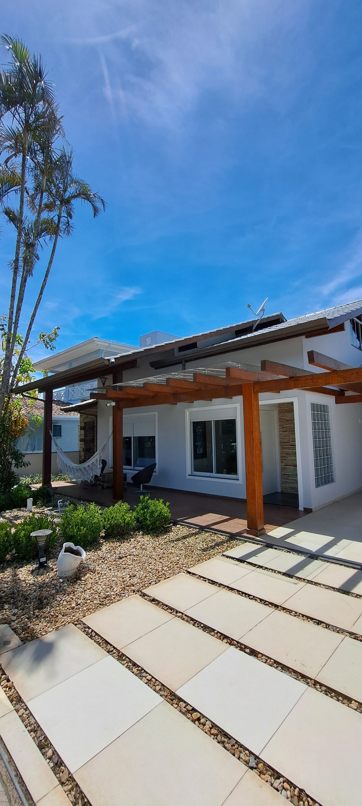 La Casa Brisa do Mar est située à Praia do Forte, à moins de 200 mètres de la plage de Jurerê Internacional. Il y a 3 chambres, dont 1 suite, et toutes les chambres ont la climatisation. Le balcon vitré peut être entièrement ouvert pour que vous puissiez sentir la brise marine, vous reposer et profiter de la vue. La maison dispose également d'un coin barbecue confortable, idéal pour rassembler la famille et passer de bons moments. Une retraite confortable et très bien située pour vous faire découvrir le meilleur de la région.