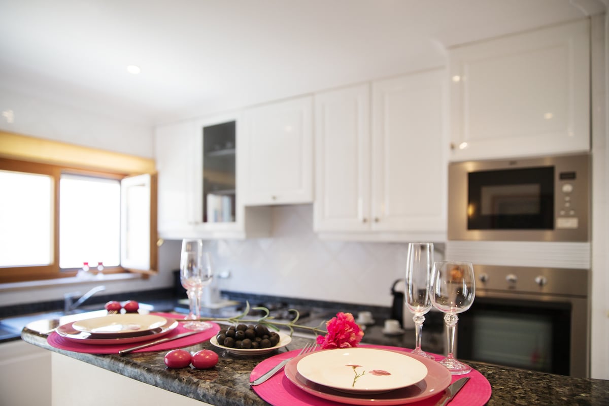 This sublime holiday apartment of about 55m2 is fully designed to make you feel at home. Free access to swimming pools, tennis courts, football fields and kids playground! Restaurants, shops and the beach "Praia da Rocha" are only 8 minutes away by foot. Free parking space available in front of the accommodation. We also provide free Wi-Fi and a Smart TV. There is a dishwasher but no washing machine in this apartment. However, you can find laundromats in shopping centres.