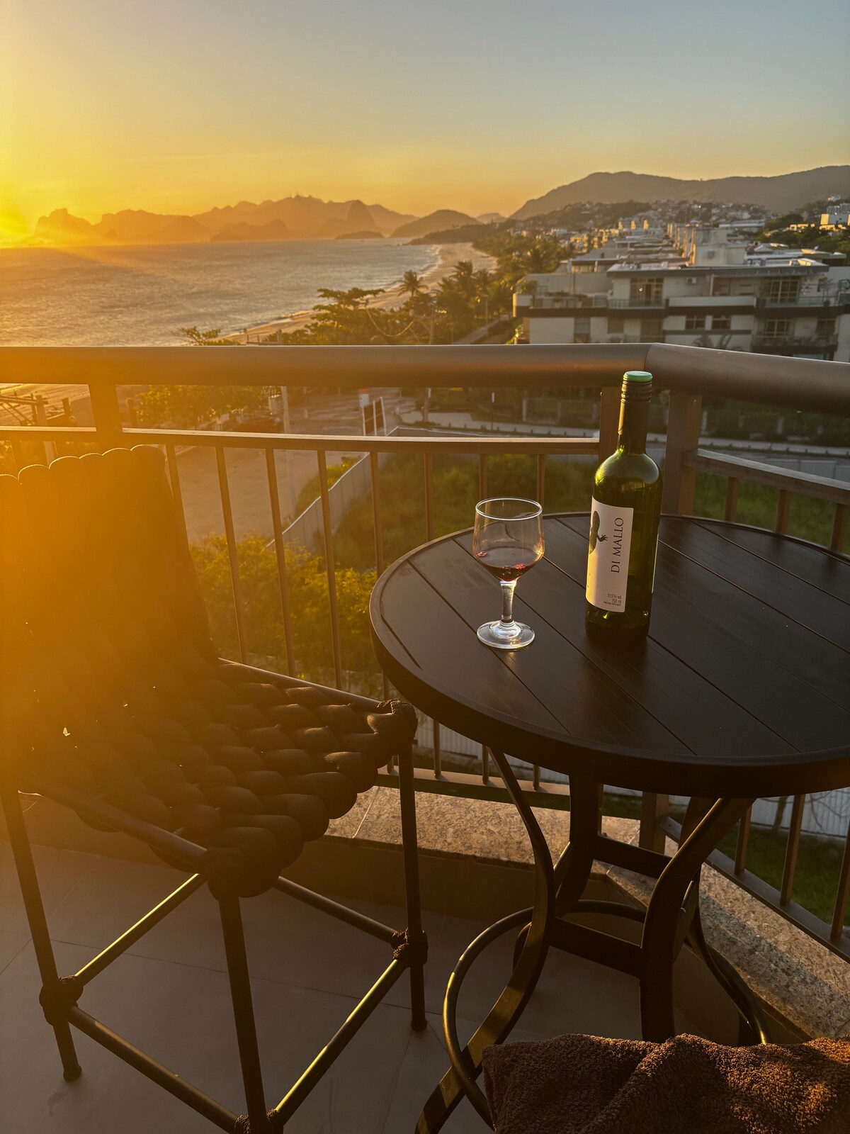 9e étage, à 100 m de la plage et vue privilégiée sur la mer et les points touristiques : Cristo Redentor, Pão de Açúcar et un beau coucher de soleil, depuis le balcon de l'appartement ! Aéré, propre, équipé, très bien situé pour des loisirs en toute sécurité, avec des plages et des piscines ! Idéal pour le "home office" avec une vue extraordinaire et tout le confort offert par l'appart-hôtel ! Restaurant avec service en chambre, espaces fitness et enfants, buanderie et parking. Bord de mer avec kiosques et promenade pour des promenades et des randonnées !