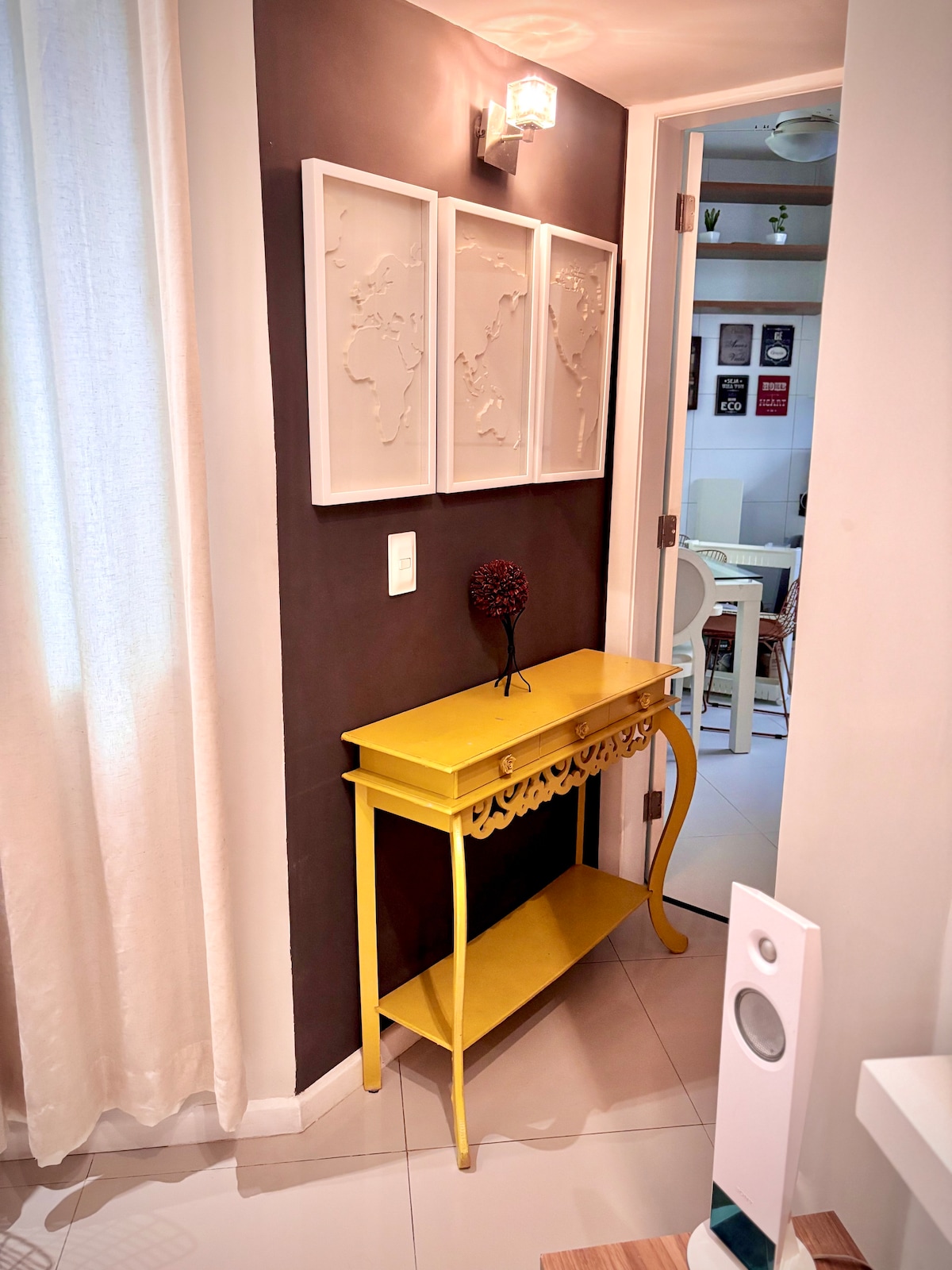 The stylishly decorated loft features an open concept with a wooden divider separating the bedroom from the living room and kitchen. It has 2 TVs, one in the bedroom and one in the living room. With a comfortable double bed, many windows bringing in natural light, a kitchen integrated with the living area, and a spacious L-shaped balcony with a surreal view of Icaraí Beach. Fully equipped, it's 200m from the beach, close to pharmacies, a market, restaurants, and the most famous street in Icaraí.