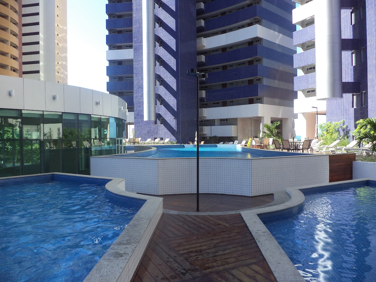 Un appartement très confortable avec vue sur la plage la plus célèbre de Fortaleza, avec 1 suite, salon avec canapé-lit, cuisine complète et balcon. L'appartement est muni d'une climatisation dans la suite. Il peut accueillir confortablement jusqu'à 4 personnes. Il est à côté de l'hôtel Vila galé, dans la meilleure partie de la plage du futur. Dans la copropriété, il y a une salle de jeux, une salle de sport, un jacuzzi, un sauna, une ludothèque et 4 piscines.
