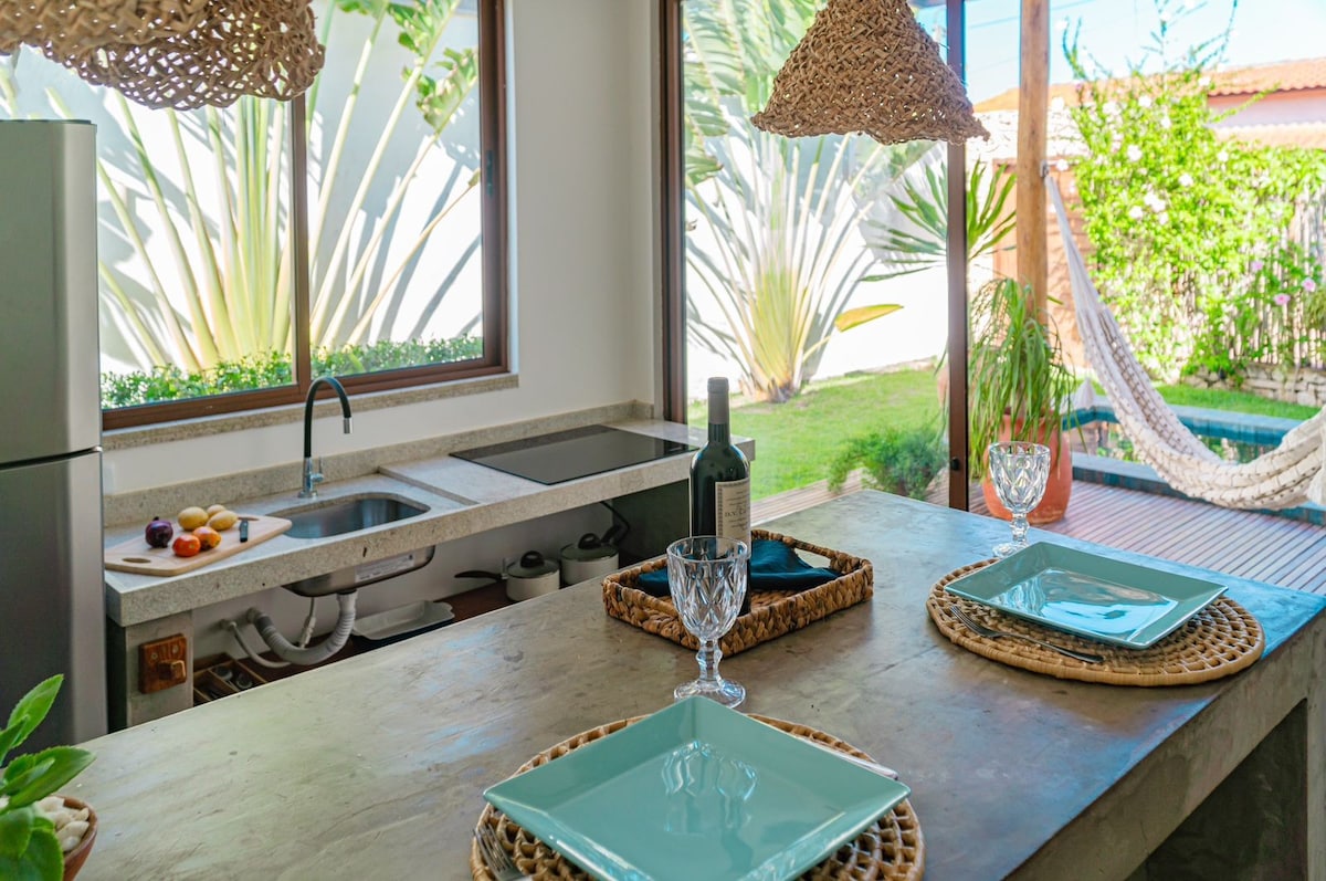 Réveillez-vous au son de la mer et sentez le sable sur vos pieds. Ici, la journée commence avec une brise et des vues infinies, entre les baignades sur la plage et les moments de détente dans la piscine en bord de mer. En fin d'après-midi, le coucher de soleil devient une toile de fond pour se détendre dans le jacuzzi privé avec vue, prendre un verre et simplement ralentir. La nuit, le ciel étoilé et le climat agréable vous invitent à des conversations tranquilles, au rire et à un repos reposant. Et quand vous voulez sortir, Rua da Xepa est à proximité, avec le charme de São Miguel do Gostoso.