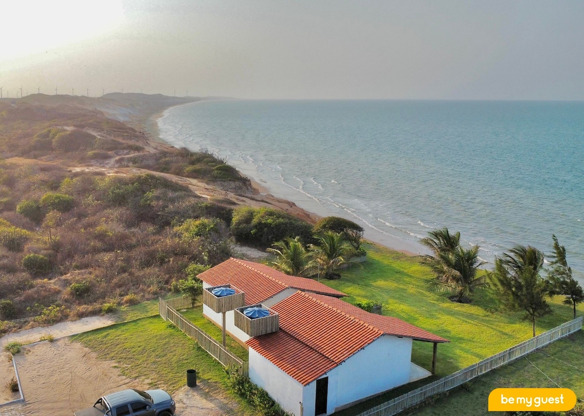 This dream home is located in the beautiful Redonda Beach, a natural paradise and fisherman's village in Ceará, Brazil. Located 220km from Fortaleza, its an oasis of natural wonders. The house has a luxurious structure, with four suites of large double beds including air conditioning, mini fridge and balcony. We also a room with two single beds, and additionaly 2 single and one double mattress: The view is amazing, however is important to mention STAIRS for access. Insta @CasadaRedonda.CE