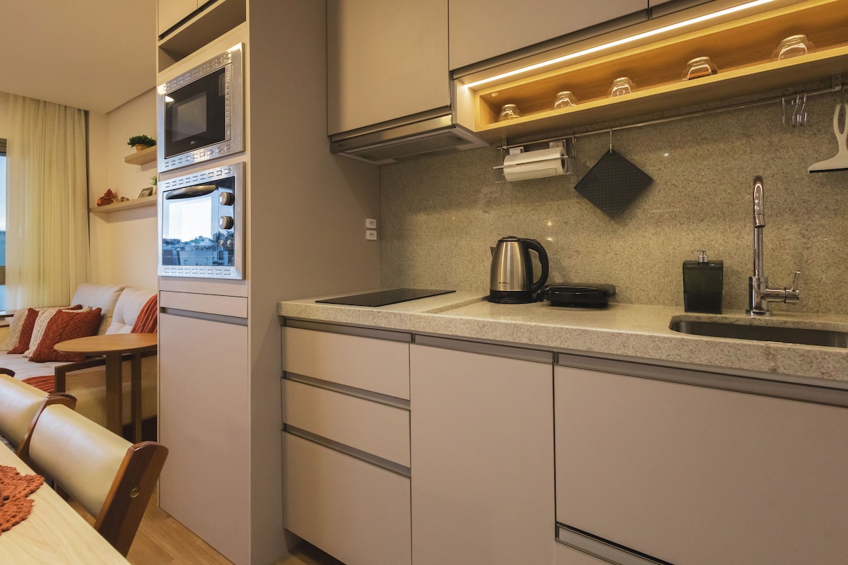 Profitez d'une expérience élégante dans cet endroit bien situé et différent. Nous sommes situés sur l'Avenue 24 de Outubro, à 20 mètres de la très animée Rue Nova Iorque, dans l'un des quartiers les plus charmants de POA. Décoré et conçu pour votre bien-être, nous voulons que vous vous sentiez chez vous ! Avec tout le confort et les plaisirs qu'un bon hôte peut offrir ! De l'espace : Chauffe-eau Canapé Bureau Table de salle à manger Nespresso Sèche-cheveux Lit Queen Lit supplémentaire Linge de lit et serviettes de bain haut de gamme