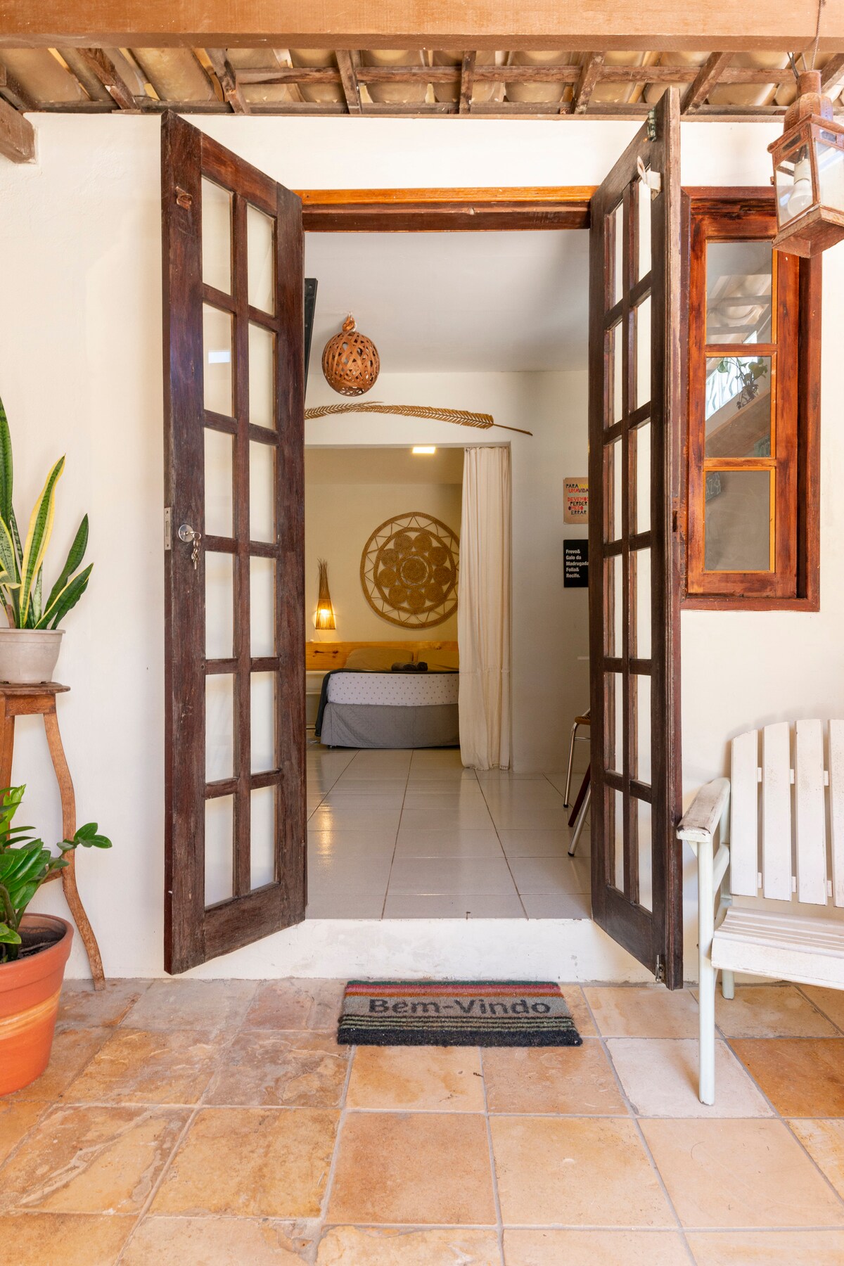 La Casinha peut accueillir confortablement deux personnes, c'est une suite de 3m x 3,5m. avec un lit Queen, AC Split et TV, un petit coin équipé pour cuisiner et une salle de bain avec douche chaude. La suite dispose d'une intimité totale avec entrée privée, d'une cour et d'une terrasse avec hamac. Le centre et la plage sont à un pâté de maisons. Il y a un parking à côté de la Casinha.