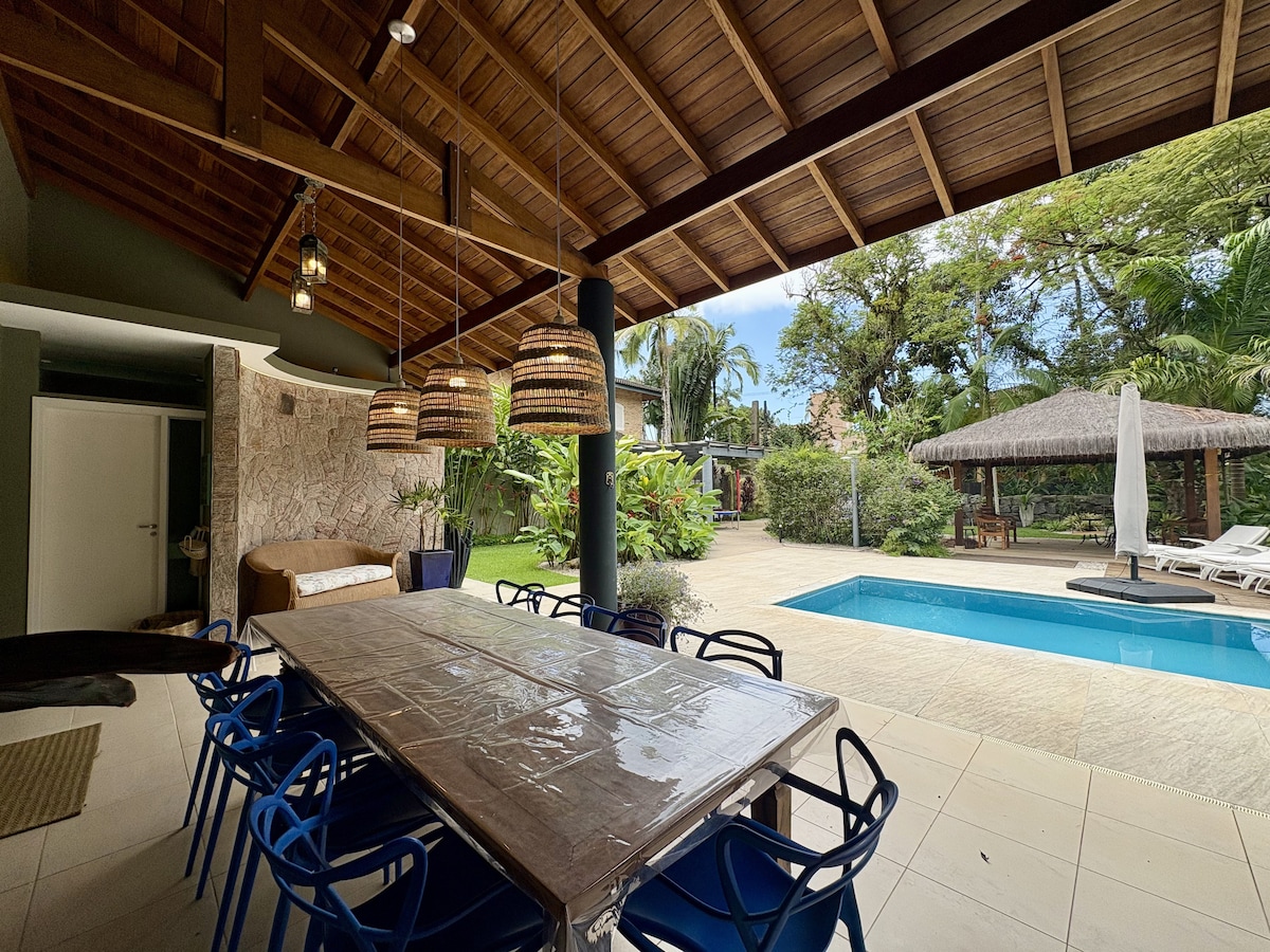 Cette maison pleine de style est idéale pour ceux qui recherchent confort, confort et belles plages. Son thème est indigène (vous verrez certainement beaucoup d'Indiens autour de la maison). L'emplacement est un autre point qui attire l'attention, car il est situé dans une copropriété avec seulement 10 maisons et dans une région extrêmement privilégiée qui facilite l'accès à plusieurs plages, sentiers, cascades, sites touristiques, promenades en bateau vers les îles et d'excellents bars/restaurants.