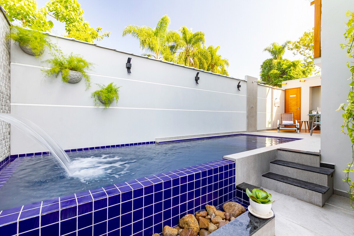 Venez profiter de la commodité de séjourner à proximité du centre historique et à proximité de la plage de Jabaquara. L'endroit est à 900 mètres du centre historique, et vous pouvez vous y rendre en vous promenant le long de la rivière. L'appartement est privé. Il dispose d'une piscine avec jacuzzi et cascade, un beau jardin pour profiter de la paix du lieu, cet espace est partagé avec un autre appartement (seulement 2 appartements sur place).