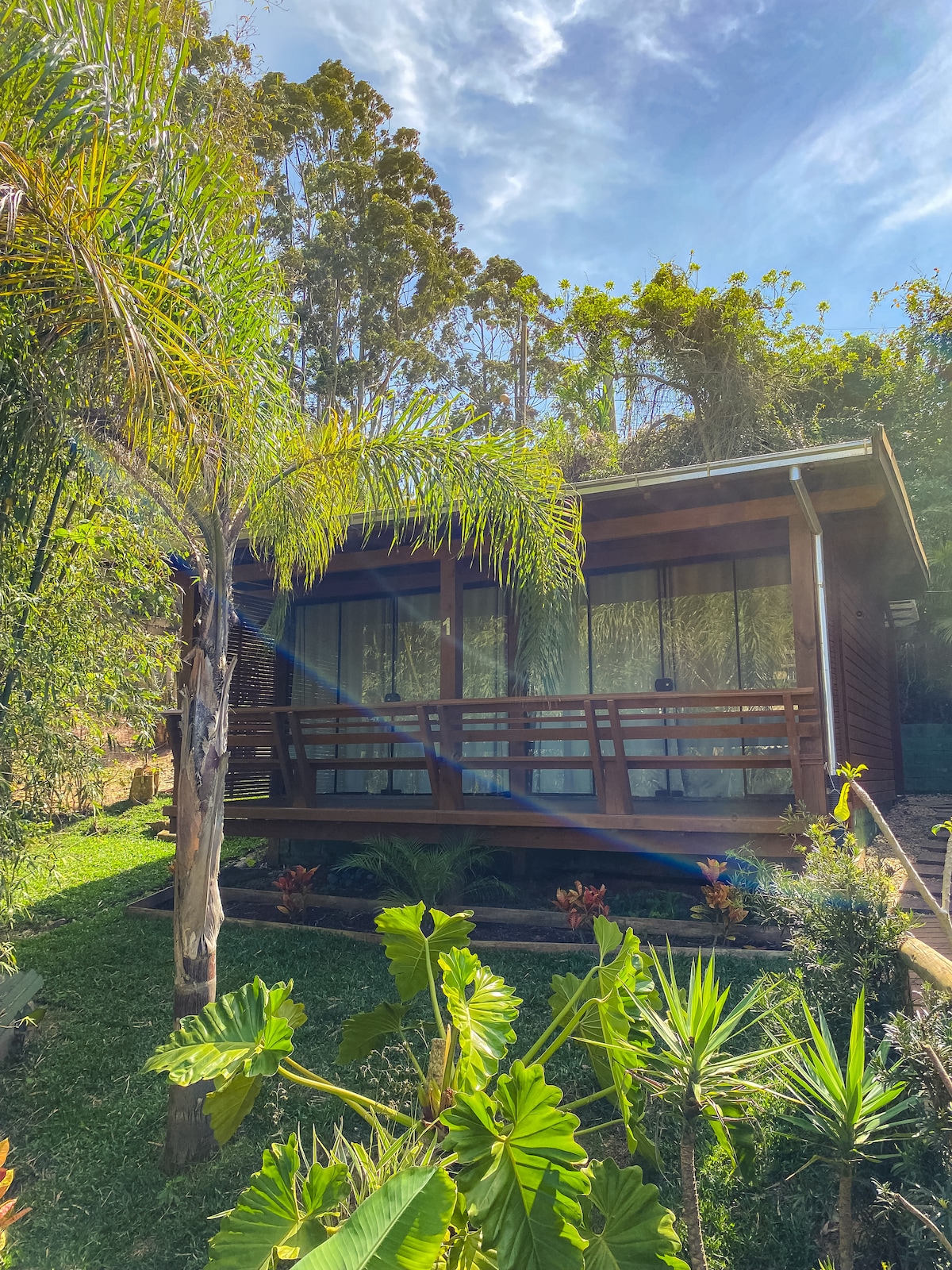 🌿 Le chalet 1 à Koru Cabanas est une retraite paisible entourée de verdure, offrant plus d'intimité pour votre séjour. 🌻 La propriété dispose de 3 chalets, d'un jardin avec un étang et d'un espace barbecue commun. 🏡 Le logement peut accueillir jusqu'à 3 personnes (chambre double + canapé-lit), dispose d'une cuisine entièrement équipée, d'une connexion Wi-Fi, de la climatisation et d'une place de parking. 📍Nous sommes à 600 mètres du centre et à 1,2 km de Praia do Rosa.