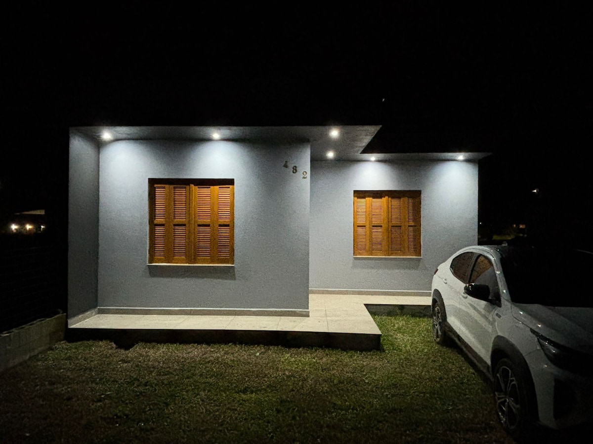 Pour ceux qui recherchent une plage tranquille, pour se reposer, surfer ou pêcher, notre maison est idéale, elle est située à un pâté de maisons de la mer ! À 15 minutes du centre d'Arroio do Sal et à 30 minutes de Torres. La maison est neuve, nos installations sont conçues pour mieux accueillir nos clients, la cour est grande et entièrement clôturée, le garage est couvert, avec barbecue et poêle à bois, la cuisine est complète (tous les ustensiles et appareils électroménagers), nous fournissons le linge de lit !