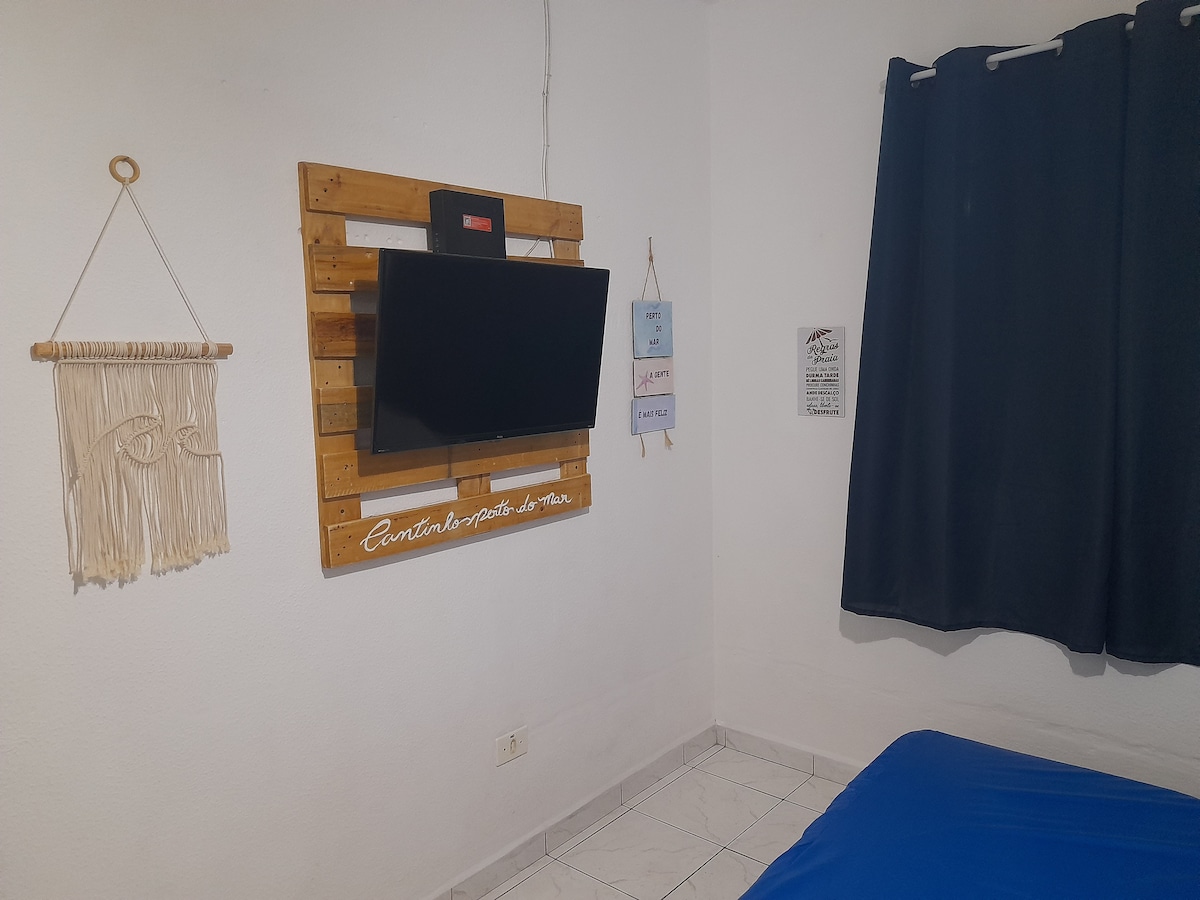 Petit coin près de la mer est un kitnet, idéal pour ceux qui visitent la côte, est bien situé dans la zone centrale de Praia Grande, à proximité des supermarchés, des pharmacies, des bars, des restaurants et bien sûr, la plage ! À seulement 10 minutes à pied. Il dispose d'un espace confortable pour le bureau à domicile, avec wi-fi de 300m de claro/net, cuisine compacte complète (voir photos), lit double et futons qui deviennent un matelas simple, smart TV connectée avec disney, ainsi que des articles de plage pour votre confort ! @cantinhopertodomar