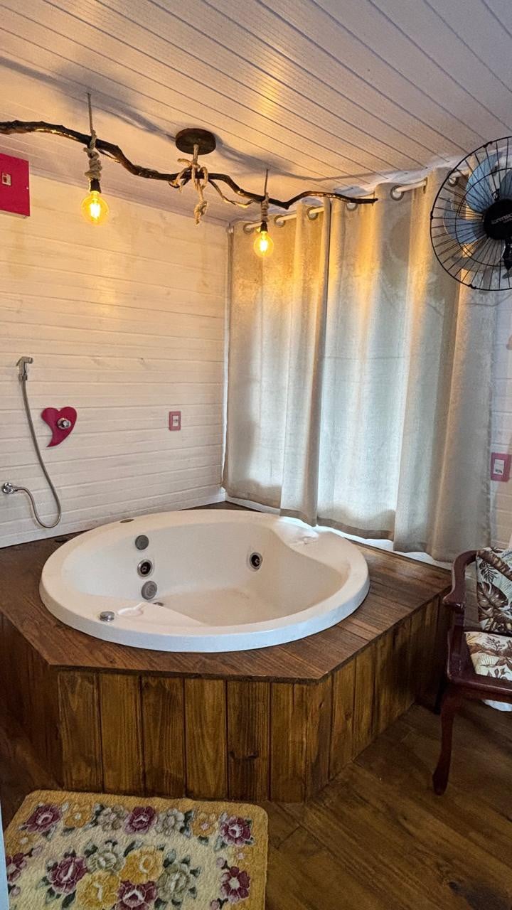 Nous sommes l'expérience @serre Une escapade exclusive en pleine nature, à seulement 3 km de Jurerê International. Notre chalet, parfait pour les couples, offre le confort essentiel pour une expérience inoubliable de connexion avec la nature. Détendez-vous sur le balcon bordé d'arbres, profitez du sauna sec, du jacuzzi extérieur et réchauffez-vous près de la cheminée à bois. La propriété dispose également d'une unité résidentielle et d'une autre cabane, où un espace thérapeutique sert les voyageurs et les visiteurs.