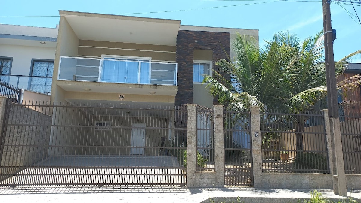🌊 Only 40 meters from the sea! House located at Praia Grande – São Francisco do Sul, in the best area of the beach, close to Prainha, allowing you to enjoy two beaches without using the car. The house has 4 bedrooms (2 suites), plus a social bathroom, all with air conditioning. Comfortable living room with Wi-Fi, Smart TV, air conditioning, and ceiling fan. Outdoor area with pool and waterfall, barbecue area, front kiosk with hammock, garage, and beach items. 🐾 Pets are welcome with additional