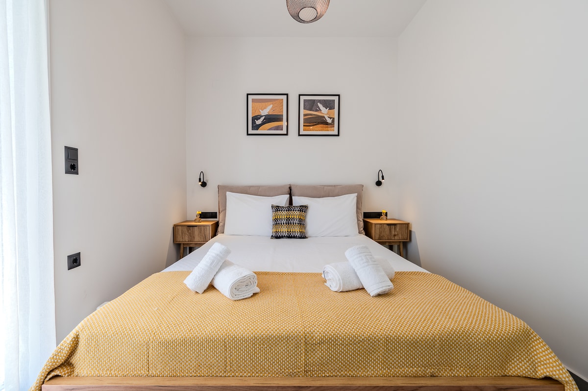 Ce studio de luxe récemment rénové avec une vue panoramique imprenable sur la mer et le coucher du soleil, est situé au sommet d'une petite colline dans un quartier calme, avec un parking gratuit dans la rue. La vieille ville est à 12 minutes à pied. Il dispose d'un espace ouvert (chambre - cuisine) et d'une salle de bain d'environ 27 m² entièrement équipée. Vous êtes autorisé à utiliser tous les espaces de l'hôtel de luxe adjacent MACARIS SUITES & SPA en commandant un repas ou une boisson.