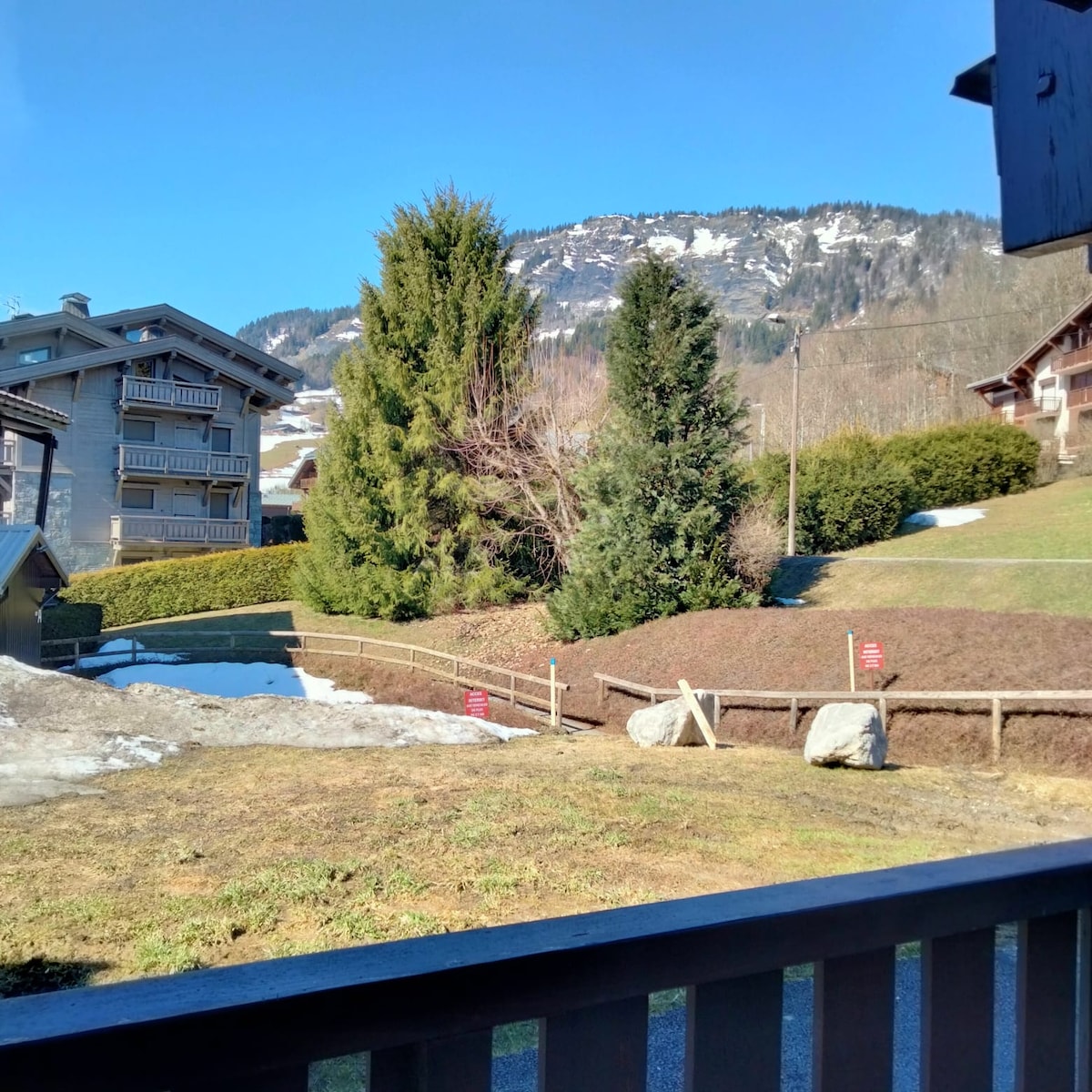 Je suis à côté et j'utilise le studio comme bureau hors saison. Je fournis tout comme à l'hôtel, serviettes draps. La localisation est idéale. Tout peut se faire à pied : des sentiers vers toutes les directions, 5 minutes du centre et 15 minutes du supermarché. Le jardin plein sud est idéal pour les soirées relax après l'effort. En voiture accès facile par la nationale très bien dégagée pour Megève (10min), Sallanches (20 minutes) ou Chamonix (35minutes) et parking privé.