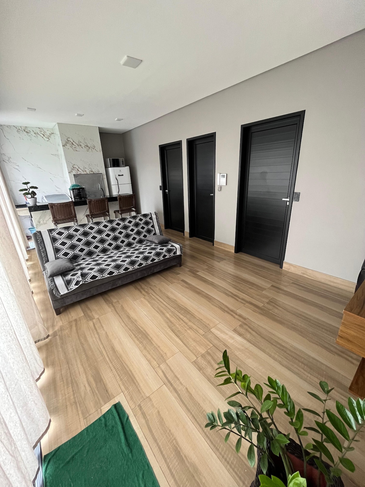- Notre logement dispose d'une belle cour avec un garage pour deux grandes voitures, une piscine et un intérieur climatisé avec la climatisation dans toutes les chambres, une cuisine avec un barbecue et des ustensiles de barbecue, un salon avec télévision et système audio intégré, une salle de bain et deux chambres avec télévision. Il y a 2 lits pour 4 personnes maximum. Nous disposons également d'un matelas double supplémentaire, ce qui permet d'accueillir jusqu'à 6 personnes. Situé près de l'entrée de Foz do Iguaçu (BR277), qui donne un accès facile à toutes les principales avenues de la ville.
