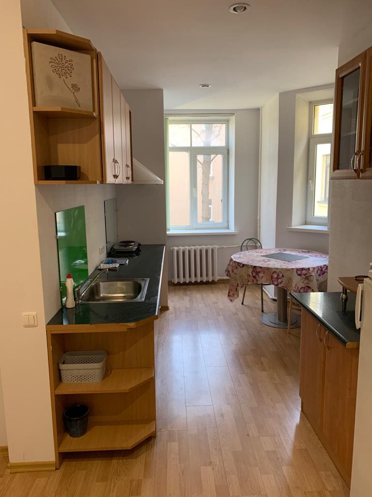 Petit studio dans le centre de Riga avec parking gratuit pour vous et votre ami ! L'appartement est situé dans un endroit avec des transports très accessibles. La marche jusqu'à la vieille ville ne vous prendra que 20-30 minutes ! Studio avec cuisine, chambre et salle de bain. Dans le quartier, il y a des parcs, différents terrains de sport et de nombreux endroits pour manger. Bienvenue à Riga !