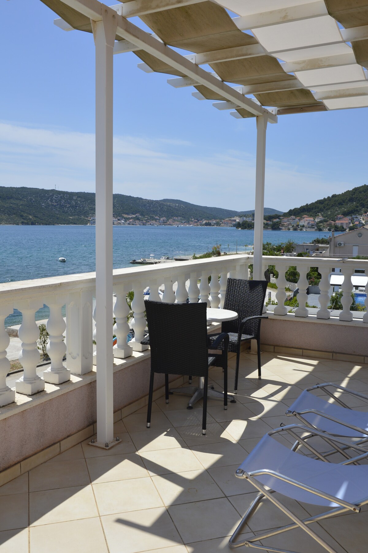 Apartments Sea are situated on a perfect location nearby Trogir, right on the beach, with the best view on the beautiful Adriatic sea and Islands. It's peacefull and quiet area. In front of the house is 3 kilometres long seaside promenade, which contains friendly hosts and healthy food in a small Mediterranean restaurants.Both apartments are with great location and very easy access to Trogir (beautiful old town with large selection of reasonably priced restaurants) and Split via boat taxis.